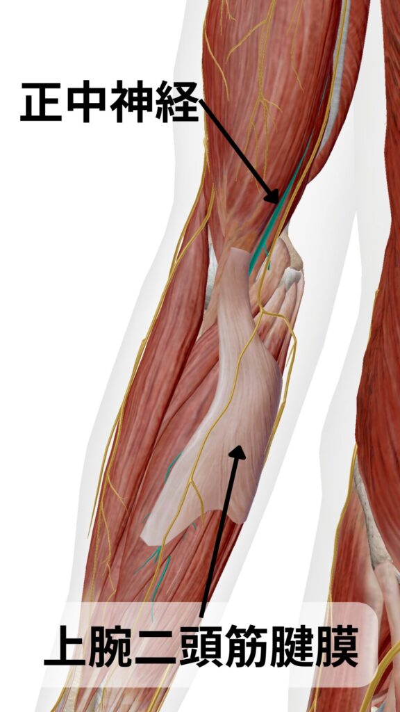- 正中神経はこの膜のすぐ下を通って肘へ向かいます。