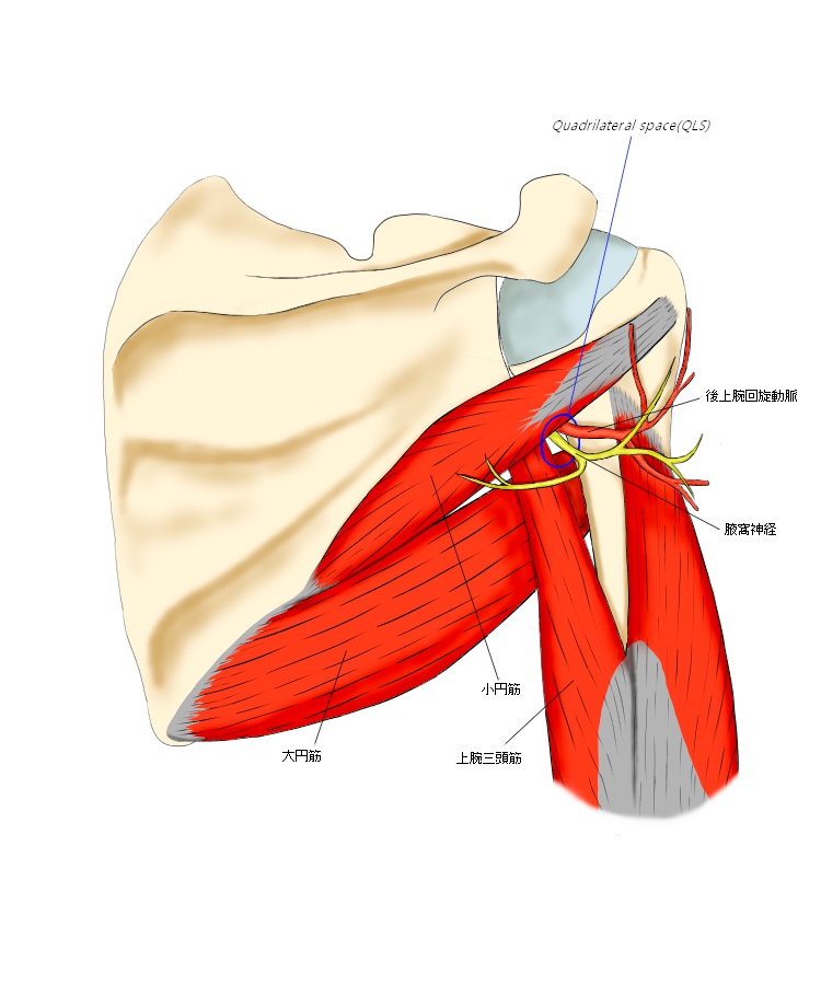その途中で四辺形間隙(クアドリラテラルスペース:QLS)と呼ばれる、比較的狭いすき間を通ります。