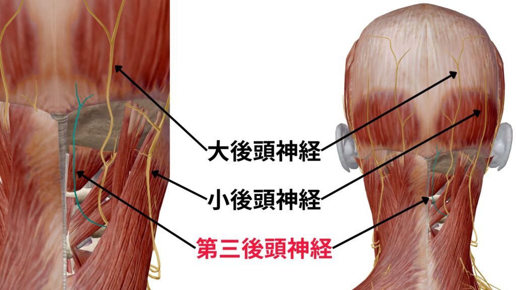 首の上の方には、後頭部や首の感覚に関わる神経がいくつかあります。